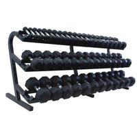 The VTX premium, 3 Tier Horizontal Shelf Rack holds up to 23 pairs of dumbbells so our 20 pair set will comfortably fit with ease.